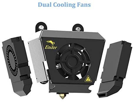 Metal Extruder Kit&Dual Cooling Fans: Ender3 Max comes with metal extruding unit ,which is stable in feeding in filaments and has stronger pressure pushing the filament into the printer nozzle;The axial cooling fan continuously helps hot end heat dissipation,the double blower fans promote quick cooling on the extruded filament,greatly improved printing quality.