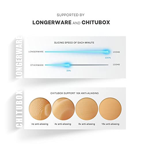 【Easy Operation & Fast Slicing】 Full color touch screen. Real-time printing status preview. Easy leveling. Upgraded trough with scale, more convenient. LONGER self-developed slicing software, output 100M slicing file in 1 minute, 3 times faster. Smart support generation in one-click. Also supported by CHITUBOX.