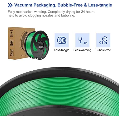 【ECO-FRIENDLY, SAFE TO USE】100% virgin pure raw materials, LOTMAXX PLA filament is made from renewable resources such as corn starch,tapioca roots or sugar cane. No odor, no pollution and non-toxic during the printing.