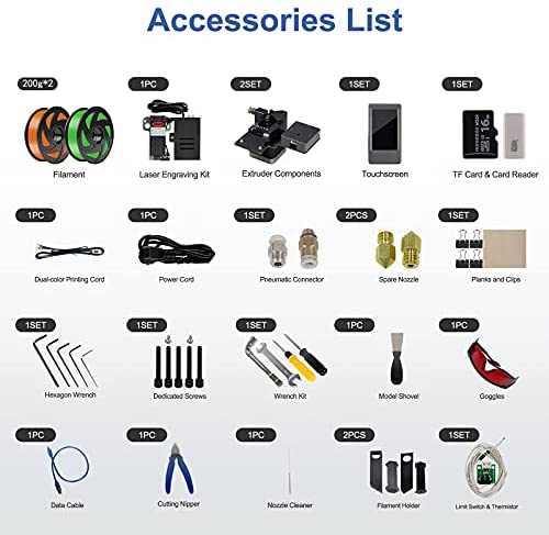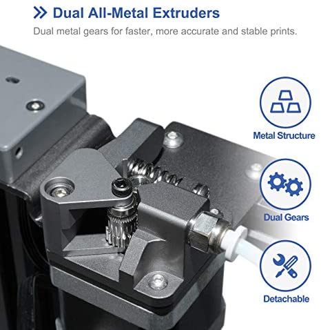 【All Metal Dual Extruder】This FDM 3D Printer is Equipped with two all-metal extruders, it supports automatic dual color filament switching in a single nozzle. With dual gear extruder, it provides better and more accurate printing.