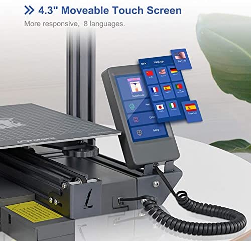 【More Features】1: 4.3″ Removable Touch Screen 2: Magnetic heated bed 3: Resume Printing 4: All Metal Frame Design 5: Meanwell Power Supply
