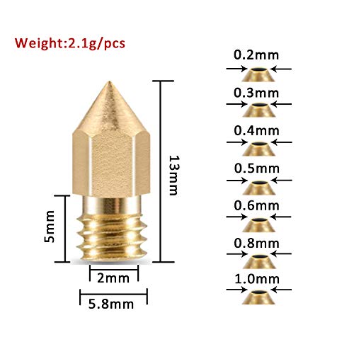 Premium Brass: Made of superior,sturdy and durable brass, easy to connect with M6 out thread.Clear engraved numbers are stamped into the sides of the nozzles.No burrs inside, which will not block the flow of PLA/ABS filaments when printing.