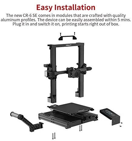 Easy Installation: CR-6 SE comes almost assembled, which is much easier to assemble than Ender 3. You only need to spend 5 minutes to attach the gantry with four screws, the screen, filament spool holder, portable handle and plug in some wires.