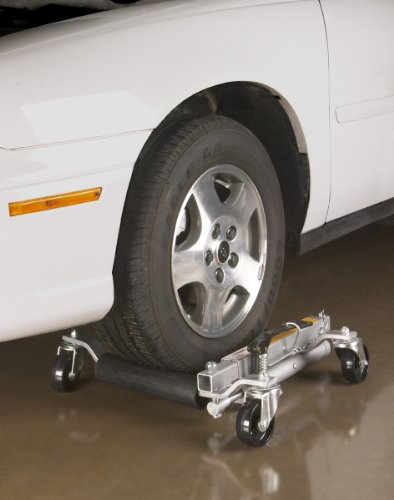 Features: 1-1/2 ton (1,500 lb) capacity, robust hydraulic system with locking pin, four heavy-duty phenolic casters, and fits tires up to 12 inches wide