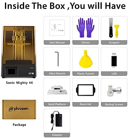【Multi-Resin Compatibility】Sonic Mighty 4K is compatible with the majority of 3D printing resin on the market. For the ideal printing experience, we strongly recommend using Phrozen Aqua-Gray 4K resin & Water-Washable resins. The resin profile and printing settings are all available on Phrozen’s official website, empowering anyone new to 3D printing to make models like a pro.