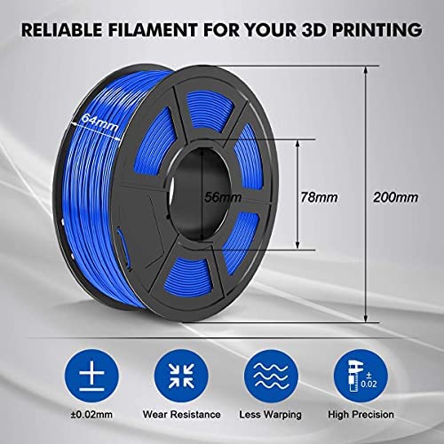PLA Filament 1.75mm, SUNLU PLA 3D Printer Filament, Dimensional Accuracy +/- 0.02mm, 1kg Spool(2.2lbs), 1.75 PLA Blue