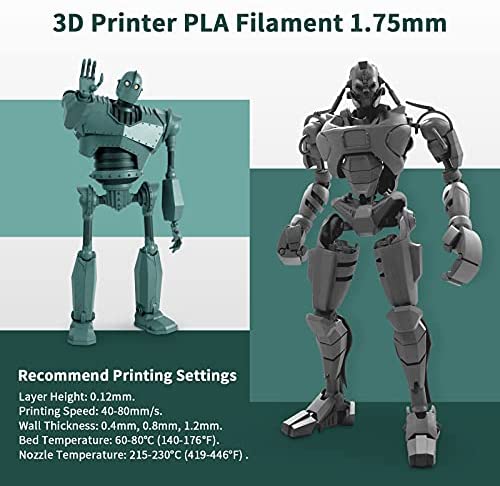 ④【PLA Filament Recommend Settings】We recommend printing at a nozzle temperature of 215-230°C(419-446°F), bed temperature of 70-80°C(158-176°F), printing speed of 40-60mm/s.