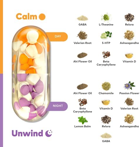 Calm & Unwind | Natural & Botanical Stress & Anxiety Support Supplement | Relaxation, Focus & Sleep Support | Non-GMO & Gluten-Free | Made in USA | 28 Vegan Capsules