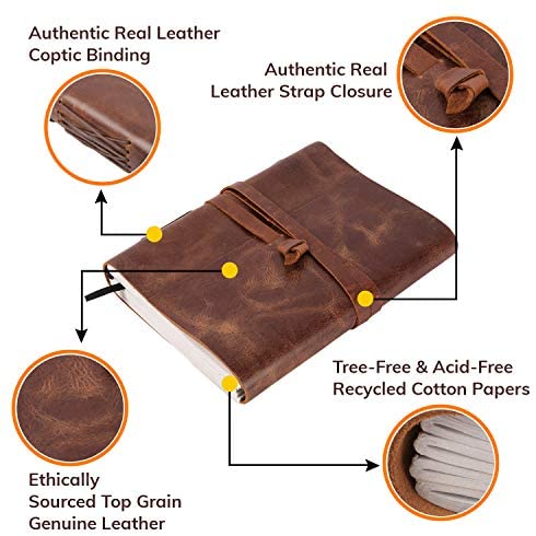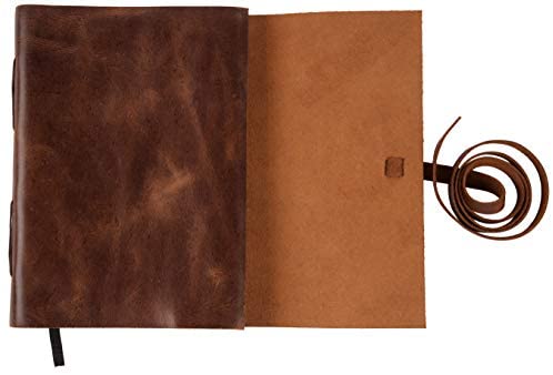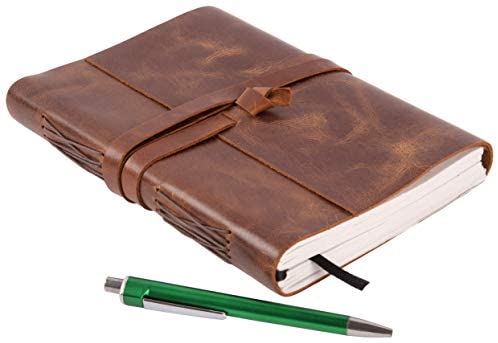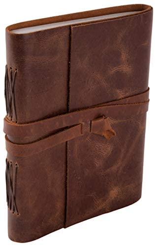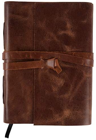 HANDMADE VINTAGE DESIGN: 100% handmade leather books are complemented with a durable thread and a bound-to-last hand-sewn binding, adding to the book’s decorative appeal – A self-leather wrap tie keeps your treasured writings under cover – Unlike many other leather notebooks with raw edges, our journal leather has an old-world feel with burnished finish.