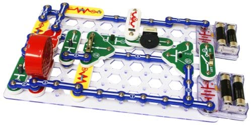 Let your child have endless fun learning to build circuits with these colorful electronic Snap Circuits. Each one features more than 60 parts that easily snap together. The Snap Circuits Classic can be used to make interesting circuits, encouraging educational play that teaches your future engineer about electricity. All of the parts have colored graphics that represent their real electronic names and symbols. This educational toy comes with a complete instruction manual and project guide that helps you to guide your child through exploring over 300 experiments. Some of the projects include making circuits for doorbells, radios, alarms, flash lights, laser light, street lamps, a lie detector and a fan Modulator. This kids’ Snap Circuits toy runs on four AA batteries that are sold separately. It is ideal for children age 8 years and older. Snap Circuits Classic comes with over 60 parts to create 305 different electronic projects. The parts, which include snap wires, a slide switch, a resistor, a microphone, and capacitors, snap together easily onto the included plastic grid-no soldering required. Each part is numbered and color-coded to make identifying them easy. These parts combine to create working circuit boards just like the ones found inside televisions, radios, and other electronic devices. With its easy-to-follow instructions, Snap Circuits gives your child a hands-on education in how electrical circuits run the everyday devices that they’re familiar with. They’ll also gain valuable lessons in building and in following instructions. The project manuals include large color illustrations and simple directions for each project. the projects are arranged in order of complexity, kids can build on their skills as they progress through the manual. The lessons start out with a simple electric light and switch project that demonstrates how electricity is turned on and off with a switch. Further along, kids can put together a fire fan symphony, a water-detection alarm, a delayed-action fan, and more. Once children have mastered several of the techniques introduced in this kit, They can use the parts to experiment and create their own customized circuits and electronic devices. The Snap Circuits SC-300 can also be upgraded to the Snap Circuits Pro, Snap Circuits Extreme, or SCM-400 with the purchase of a UC-50, UC-70, or UC-100 upgrade kit, respectively. Kids will enjoy additional parts, manuals, and projects that will take their kit- and their fun- to the next level. Snap Circuits SC-300 requires four AA batteries, which are not included. What’s in the box: plastic snap-grid, 32 electrical parts, and 2 Project manuals.