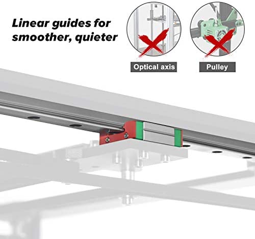 Stable, High Speed Operation, Silent Printing: Profile and sheet metal combined with all-metal body, hot bed platform leveling (optional 3 or 4 level);very easy to assemble; Linear guide (X.Y axis): achieves high precision, high speed operation, and silent printing.
