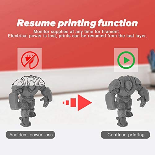 Break Detection and Power off Continuous Printing: Automatically detect the feeding condition, automatically pause printing after the material is cut off; power off, pause the continuous function; can resume printing from the last layer, saving time and reducing waste.