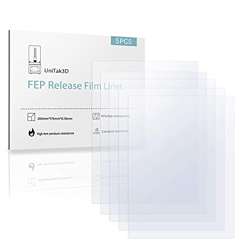 UniTak3D FEP Film for ANYCUBIC Mono X and Elegoo Saturn UV DLP LCD Resin 3D Printers 260x180mm(Pack of 5pcs)