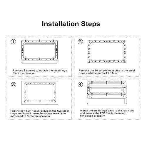 4. Install the steel rings back to the resin vat and ensure the FEP film is clean and tensioned properly.