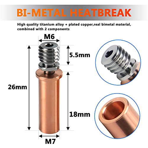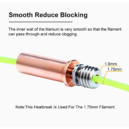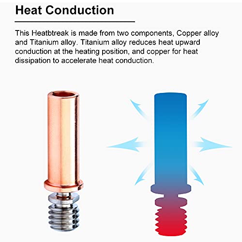 This Heatbtreak is made from two components, Copper and Titanium TC4. Titanium TC4 reduces heat upward conduction at the heating position, and copper for heat dissipation to accelerate heat conduction.