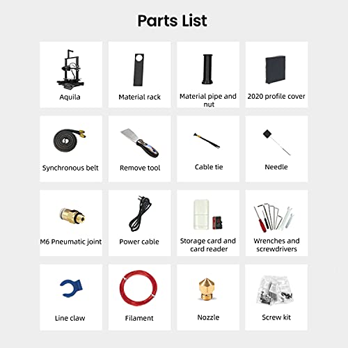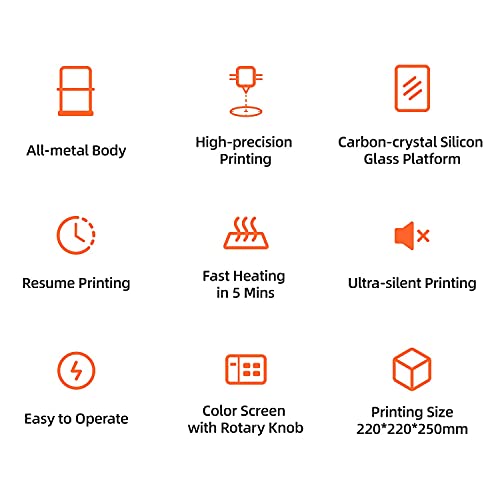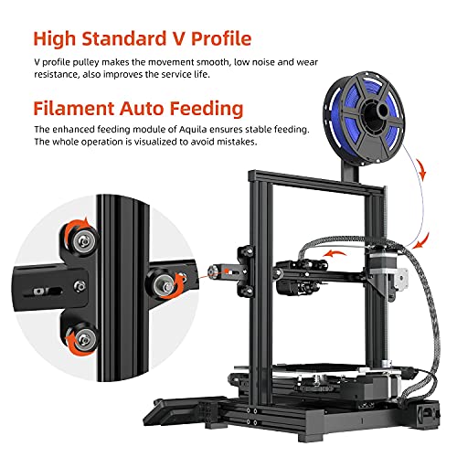 Fast Heating and Silent Printing: The Aquila 3D printer equipped with carbon crystal silicon glass plate and super quiet printing designing, the printing model will not easily become warped and the printing sounds is below 50 decibels.