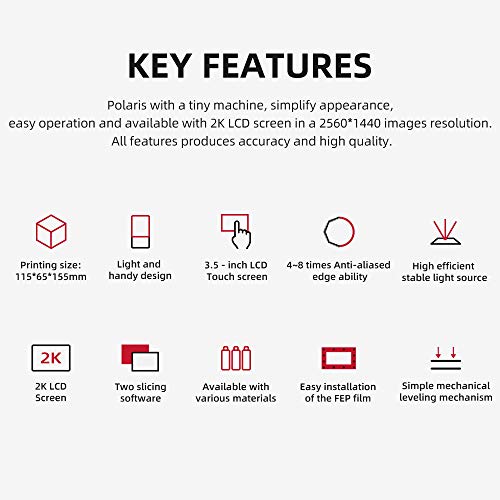 【High Precision and Resolution】Polaris uses a 2560×1440 2K HD masking LCD as to provide accurate printing with a single pixel size of 0.047mm.Polaris was able to show the model in full details