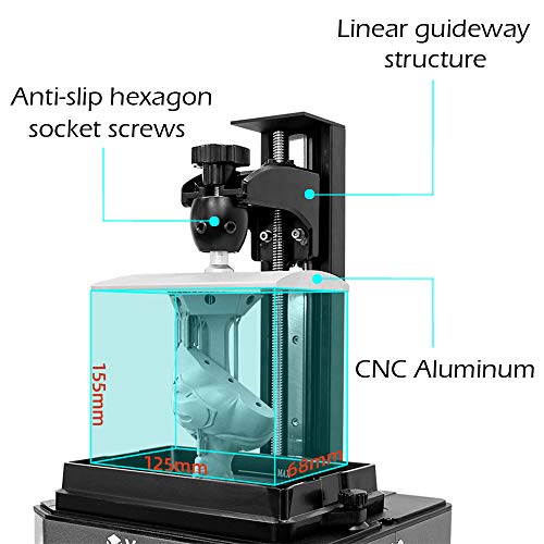 PROXIMA- A higher precision and resolution desktop UV Resin LCD 3D printer, which produces incredibly accurate prints and support resins that can be cured by light with 405 nm wavelength (better print effect with Voxelab resin). Another worthy of mention for its build volume and ease of use. At 130 x 82 x 155mm, you could comfortably print.