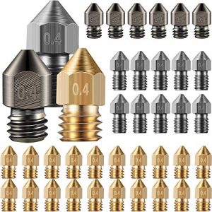 Mk8 Nozzles 3D Printer Extruder Nozzles Hardened Steel, Stainless Steel, Brass Nozzle High Temperature Pointed Wear Resistant Nozzle 0.4 mm 1.75 mm, Compatible with Makerbot, Ender 3 (36)